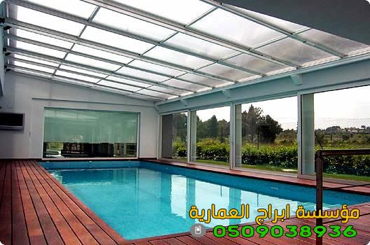 أحد الاستخدامات الأكثر شيوعًا لمظلات لوكسان أو المظلات الزجاجية هي حمامات السباحة؛ فتغطية حمام السباحة بمظلات لوكسان لا تحمي حمام السباحة من الحشرات والبكتيريا فحسب، بل تحميه أيضًا من أشعة الشمس والرياح، ويمكن الحصول على أبواب ونوافذ حمام السباحة من خلال تغطية حمام السباحة بالكامل بمظلات لوكسان، وبذلك يكون حمام السباحة محميًا تمامًا من التلف أو أي مشكلة قد يتعرض لها.