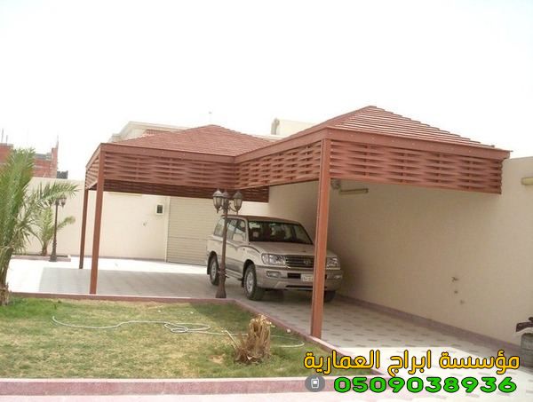 -مظلات سيارات خشبية لوفر ومجدول.